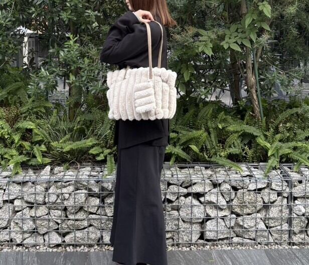 暖かみのあるツイード素材を使用した毎年素材を変えながら 長く愛されているバケツ型手提げです。 コーディネートに取り入れるだけで、秋冬ムードを盛り上げてくれます。 取り外し可能なエコファーチャームが女性らしさをアップさせてくれます。 ☆☆☆☆☆☆☆☆☆☆☆☆☆☆☆☆☆☆☆☆☆☆☆ 商品仕様: 天ファスナー 後ファスナーポケット 本体内側 ファスナーポケット&オープンポケット×2 *取り外しフェイクファーチャーム付 *付属生地:合成皮革 サイズ:22.5×23×15(cm) 横×縦×高さ 重量:280g ☆☆☆☆☆☆☆☆☆☆☆☆☆☆☆☆☆☆☆☆ #ツイードバッグ/#レディースバッグ/#バッグ/#ふわふわバッグ/#手提げバッグ/#ハンドバッグ#お出掛けコーデ/#休日コーデ/#軽量バッグ/#ボリュームバッグ/#カジュアルバッグ/#カジュアルコーデ/#トートバッグ/#くりてトート/#ファーチャーム