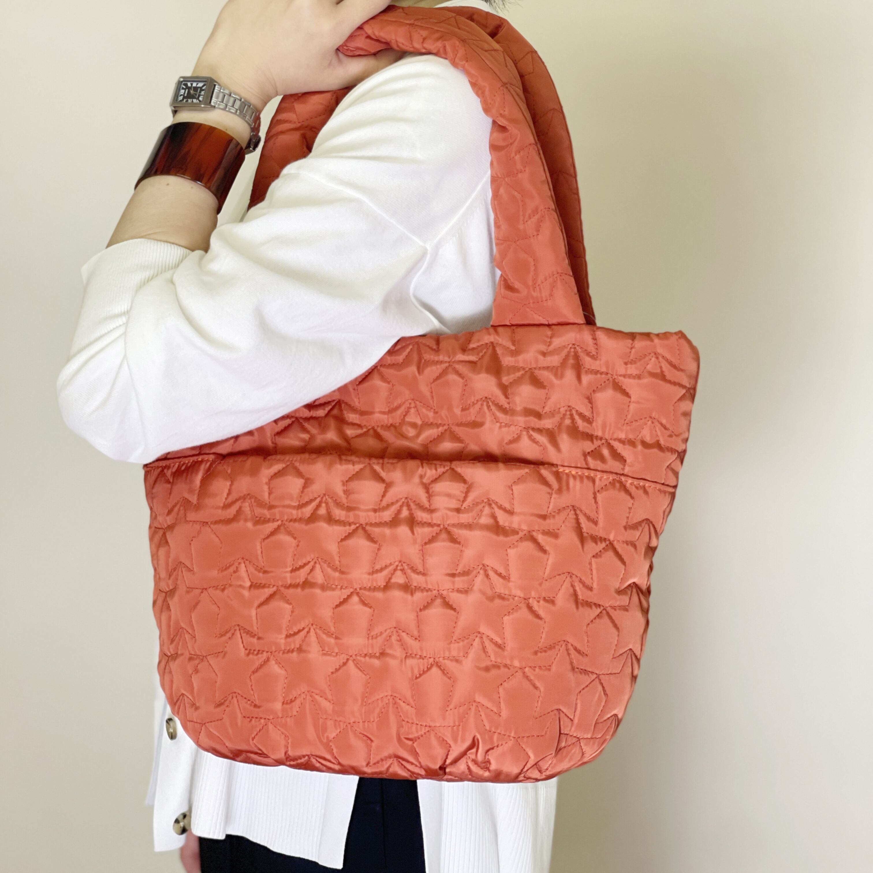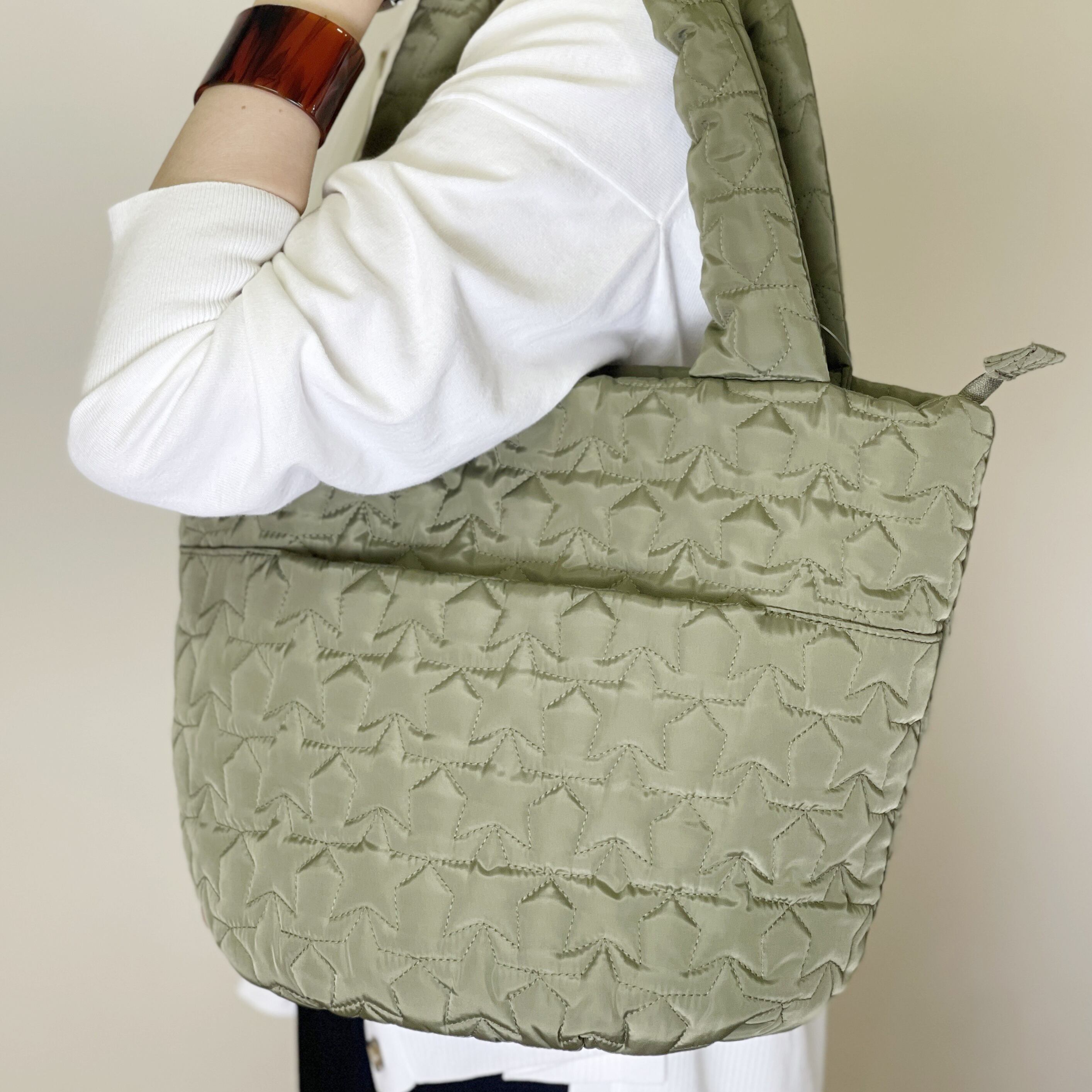 星モチーフを キルティング加工したとっても キュートな軽量トートバック。
