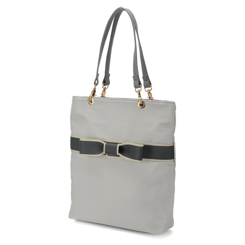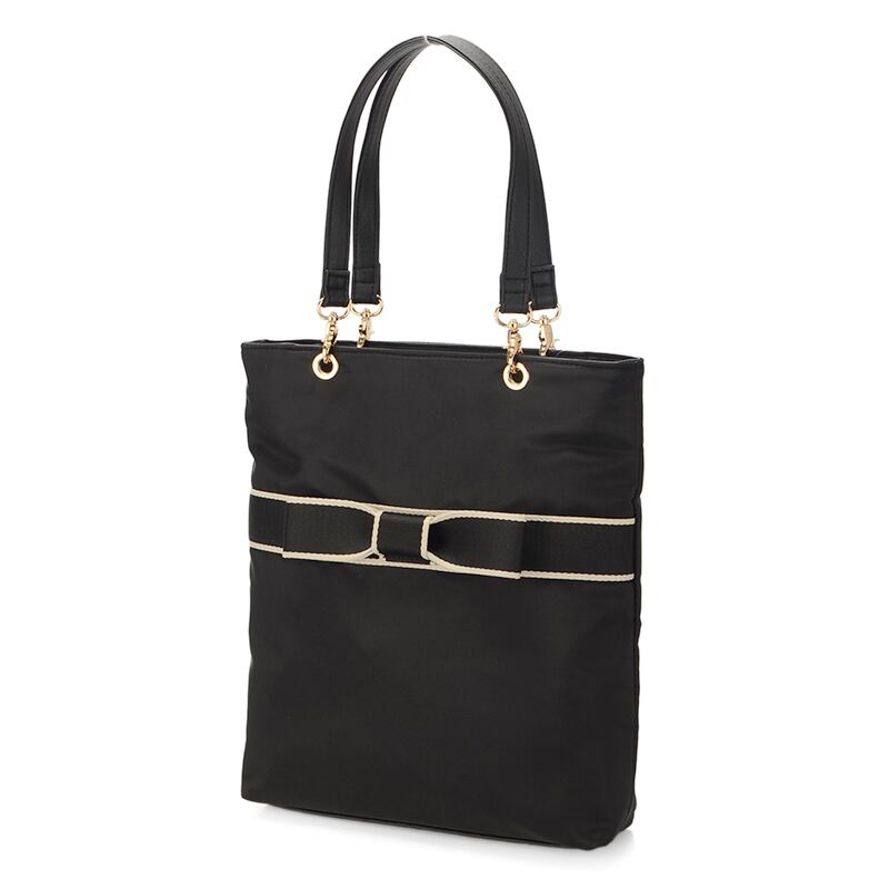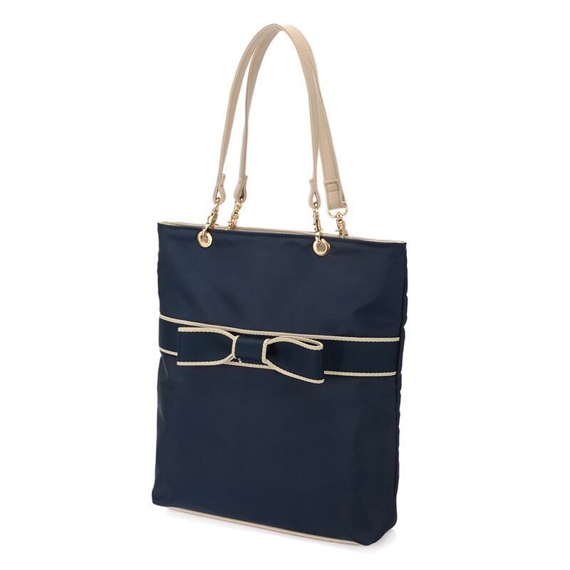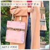 フロントにあしらわれたリボンが、上品なアクセントの手提げバッグ。